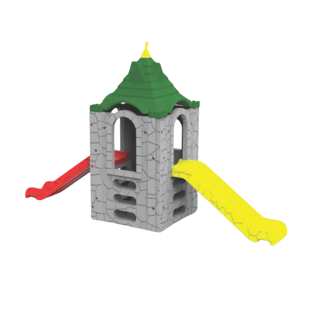 Playground confeccionado em plástico rotomoldado, com aditivos antiestáticos e anti-UV que protegem contra os efeitos de raios solares garantindo a durabilidade e a cor original do produto.